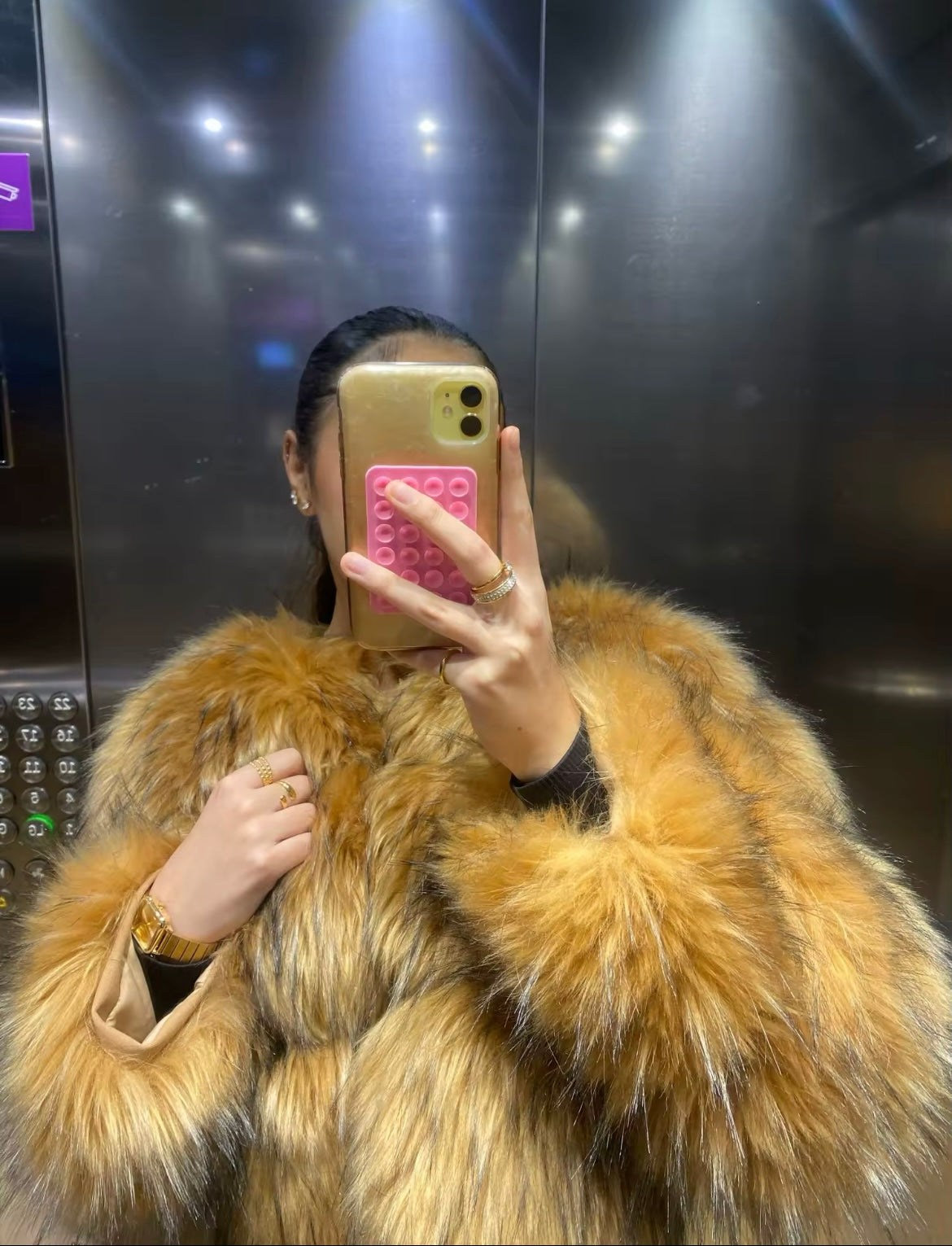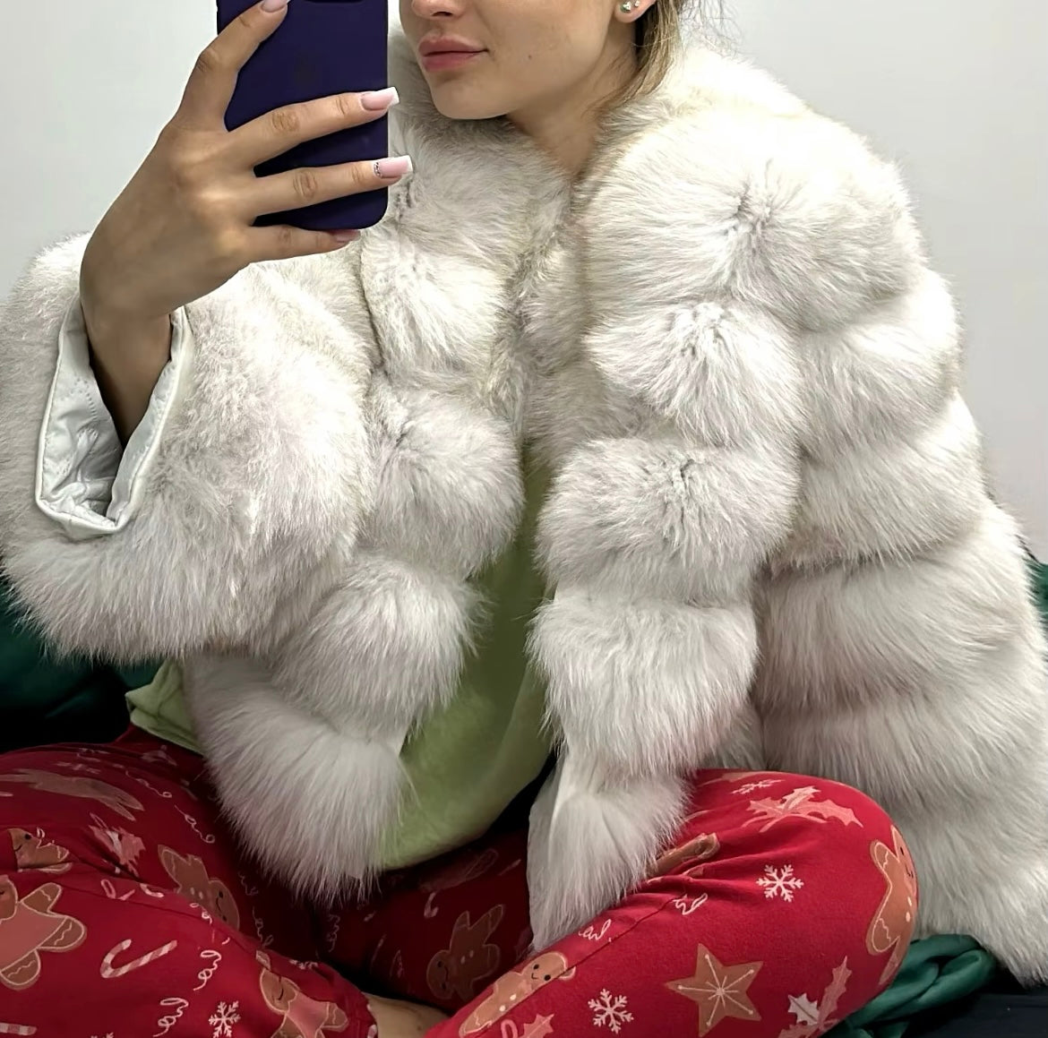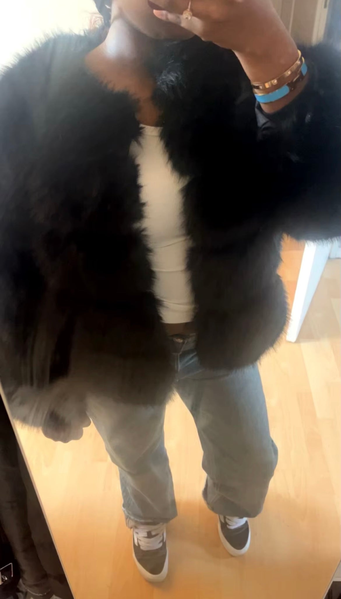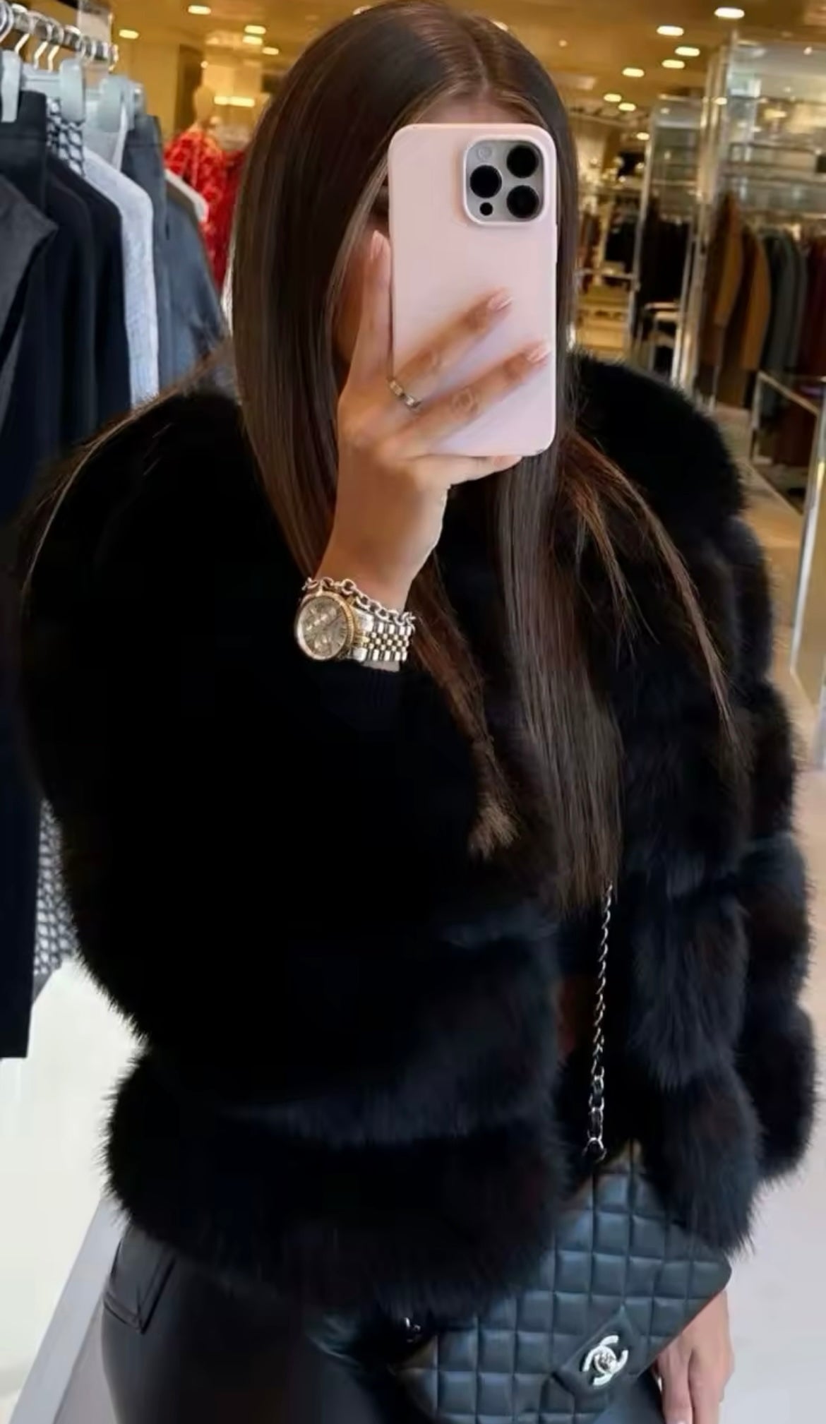 Ich liebe den Pelzmantel, der ist einfach nur perfekt.