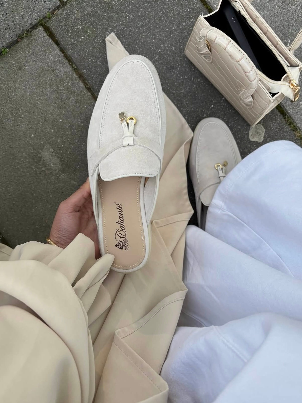 Exklusives Set: Wollmantel & Calianté Shark Boots in Beige