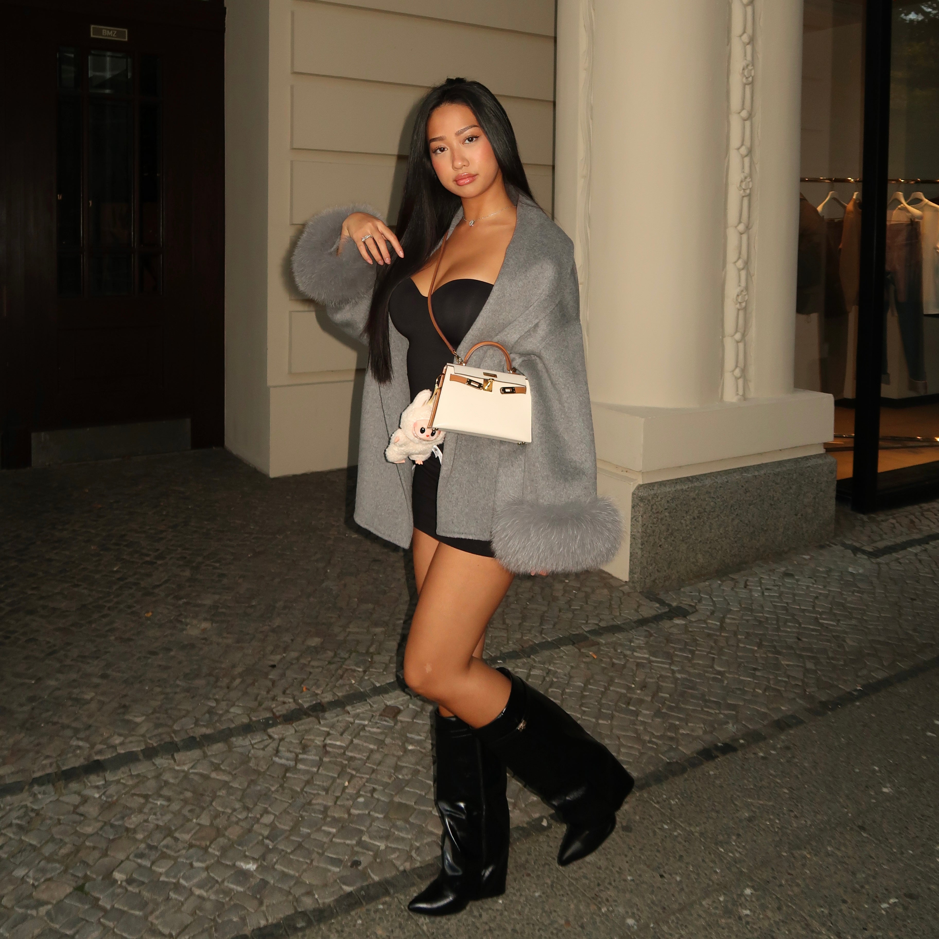 Exklusives Set: Wollmantel & Calianté Shark Boots in Weis