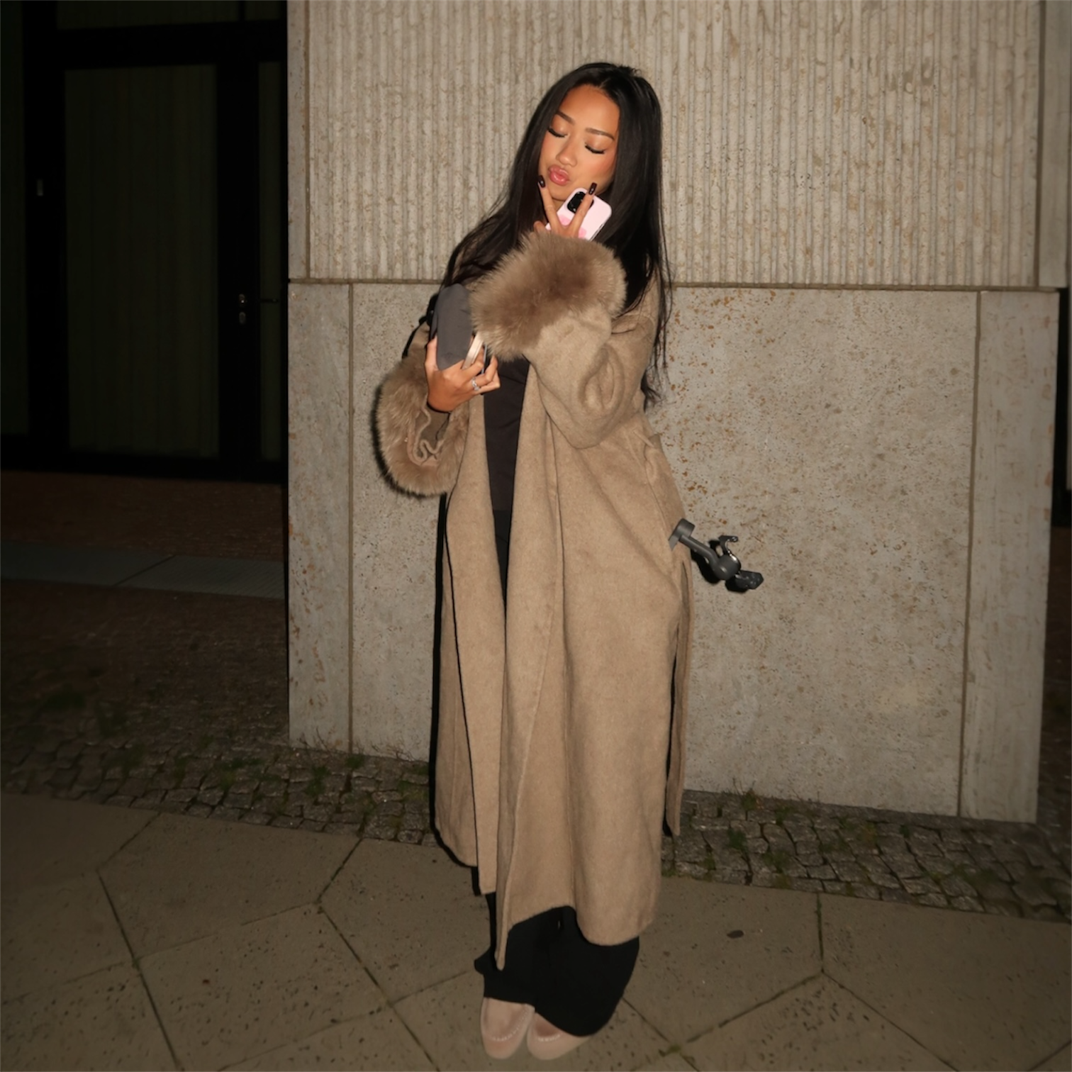 Langer Wollmantel mit Fell