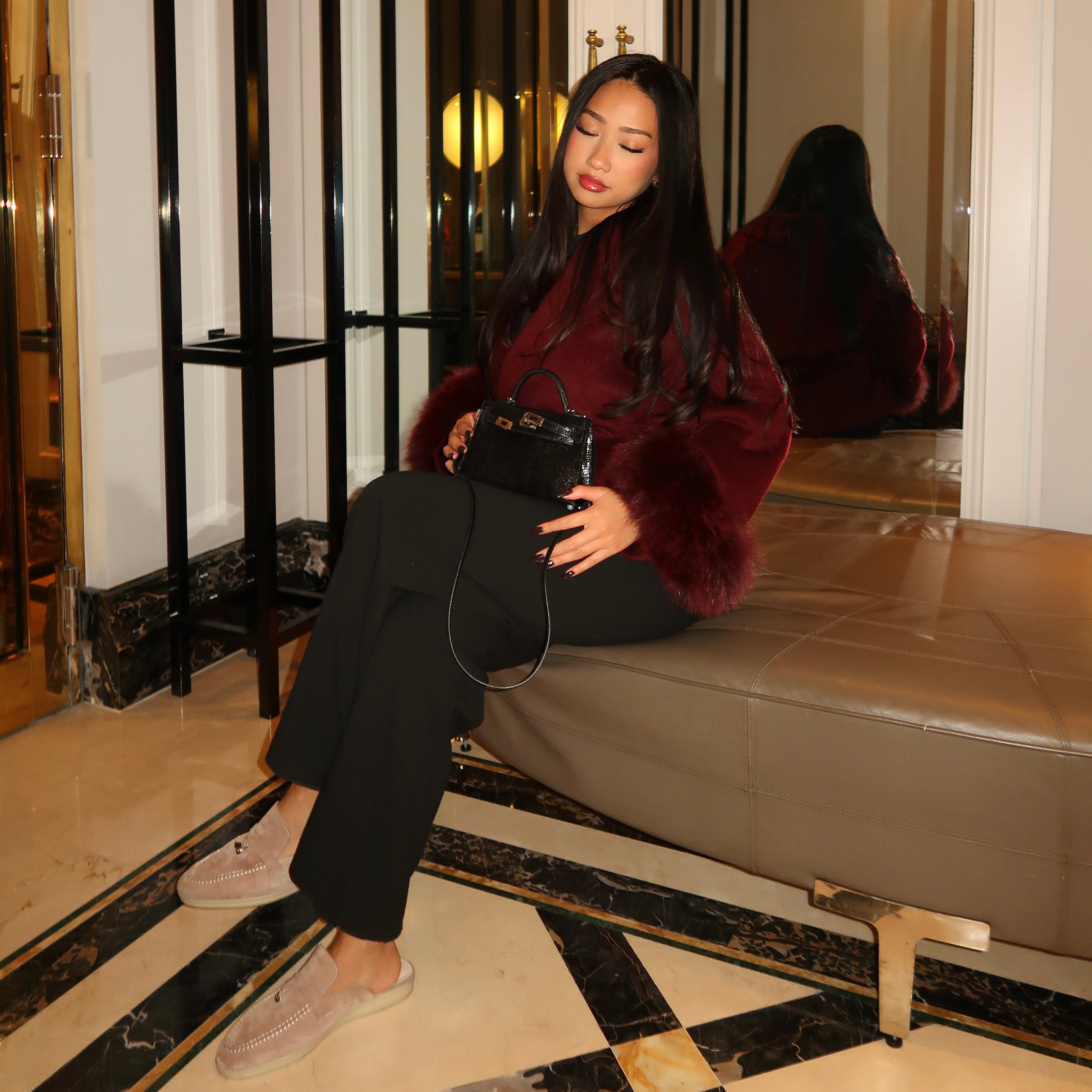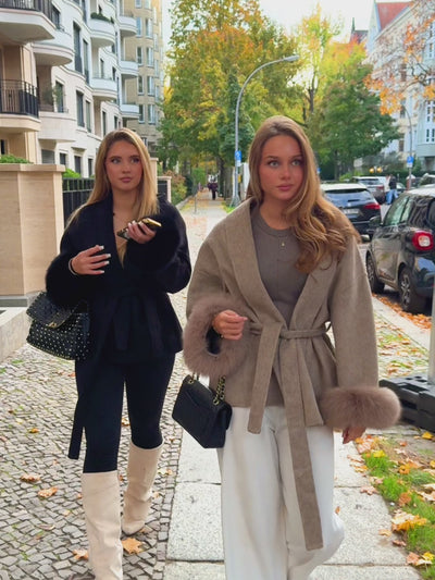 Kurzer Wollmantel mit Fellärmel - THE OSLO NOIR Schwarz
